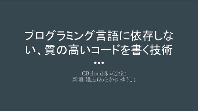 プログラミング言語に依存しな い、質の高いコードを書く技術 CBcloud 株式会社 新垣 雄志 ( あらかき ゆうじ )