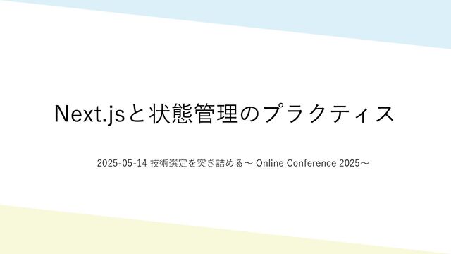 Next.jsと状態管理のプラクティス 2025-05-14 技術選定を突き詰める〜 Online Conference 2025〜
