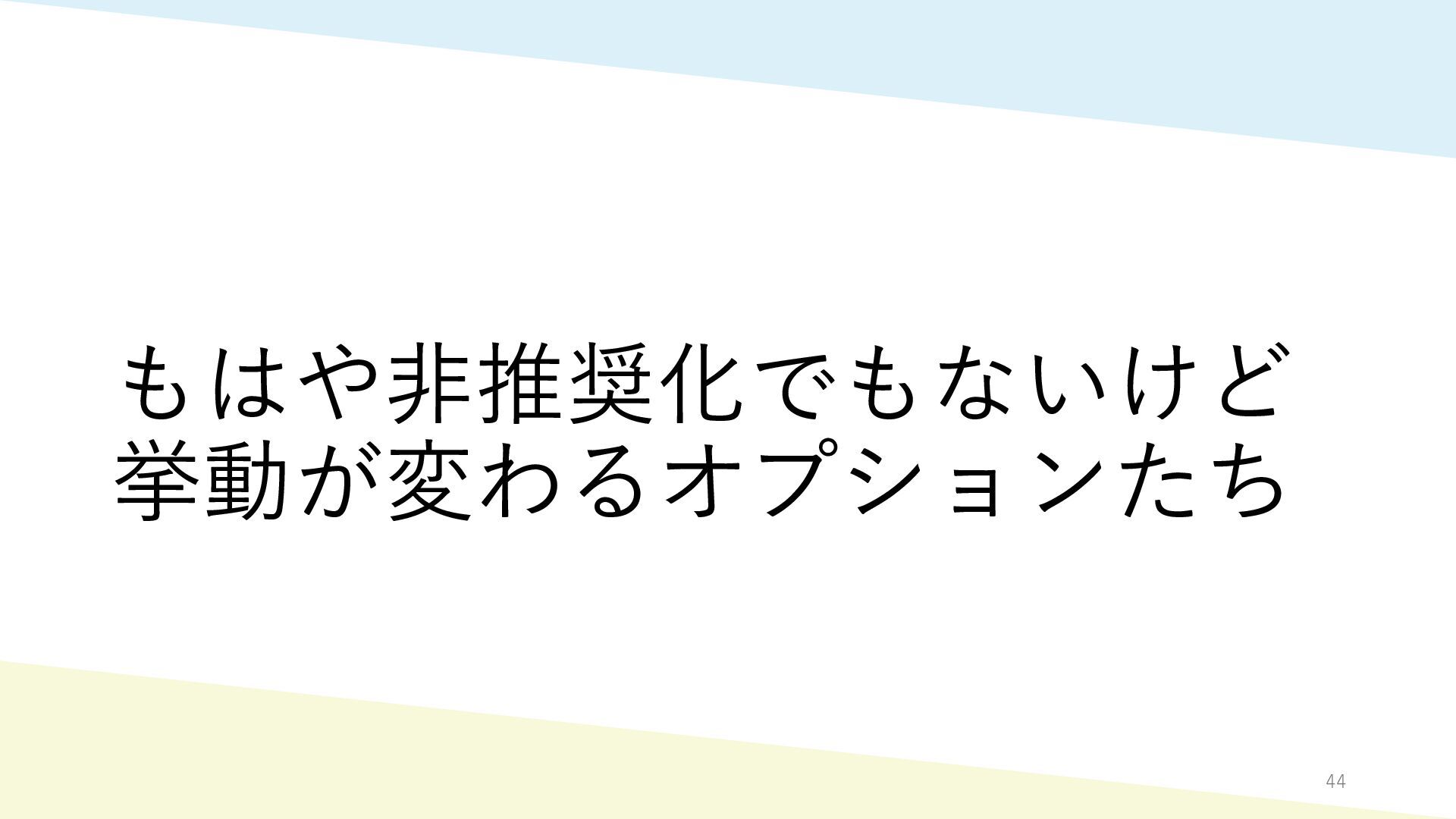 もはや非推奨化でもないけど 挙動が変わるオプションたち 44