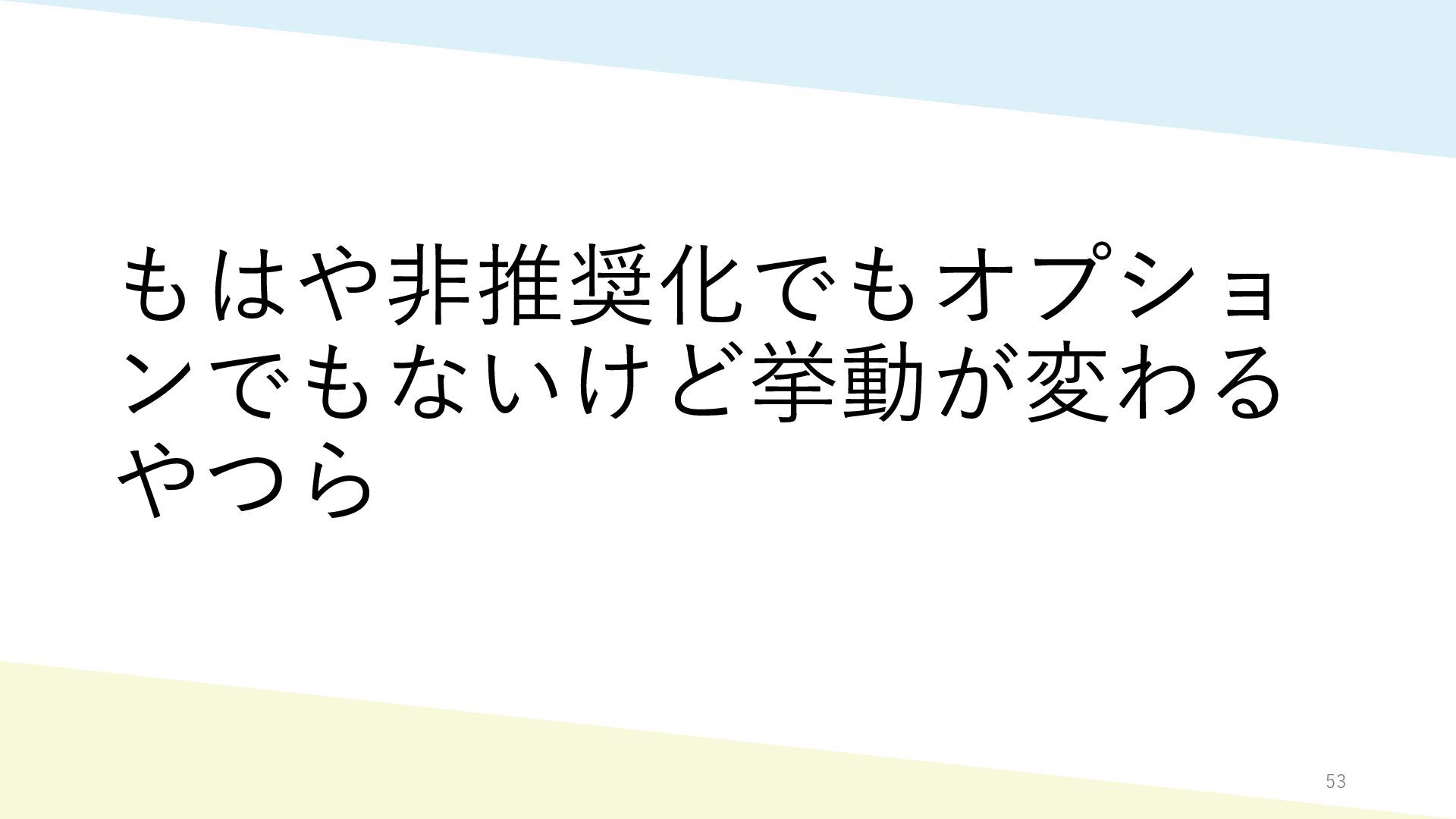 もはや非推奨化でもオプショ ンでもないけど挙動が変わる やつら 53