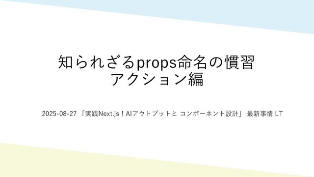 知られざるprops命名の慣習 アクション編 2025-08-27 「実践Next.js!AIアウトプットと コンポーネント設計」 最新事情 LT