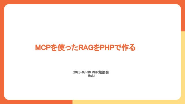 MCPを使ったRAGをPHPで作る 2025-07-30 PHP勉強会 @uiui