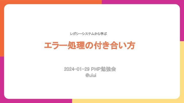 エラー処理の付き合い方 2024-01-29 PHP勉強会 @uiui レガシーシステムから学ぶ