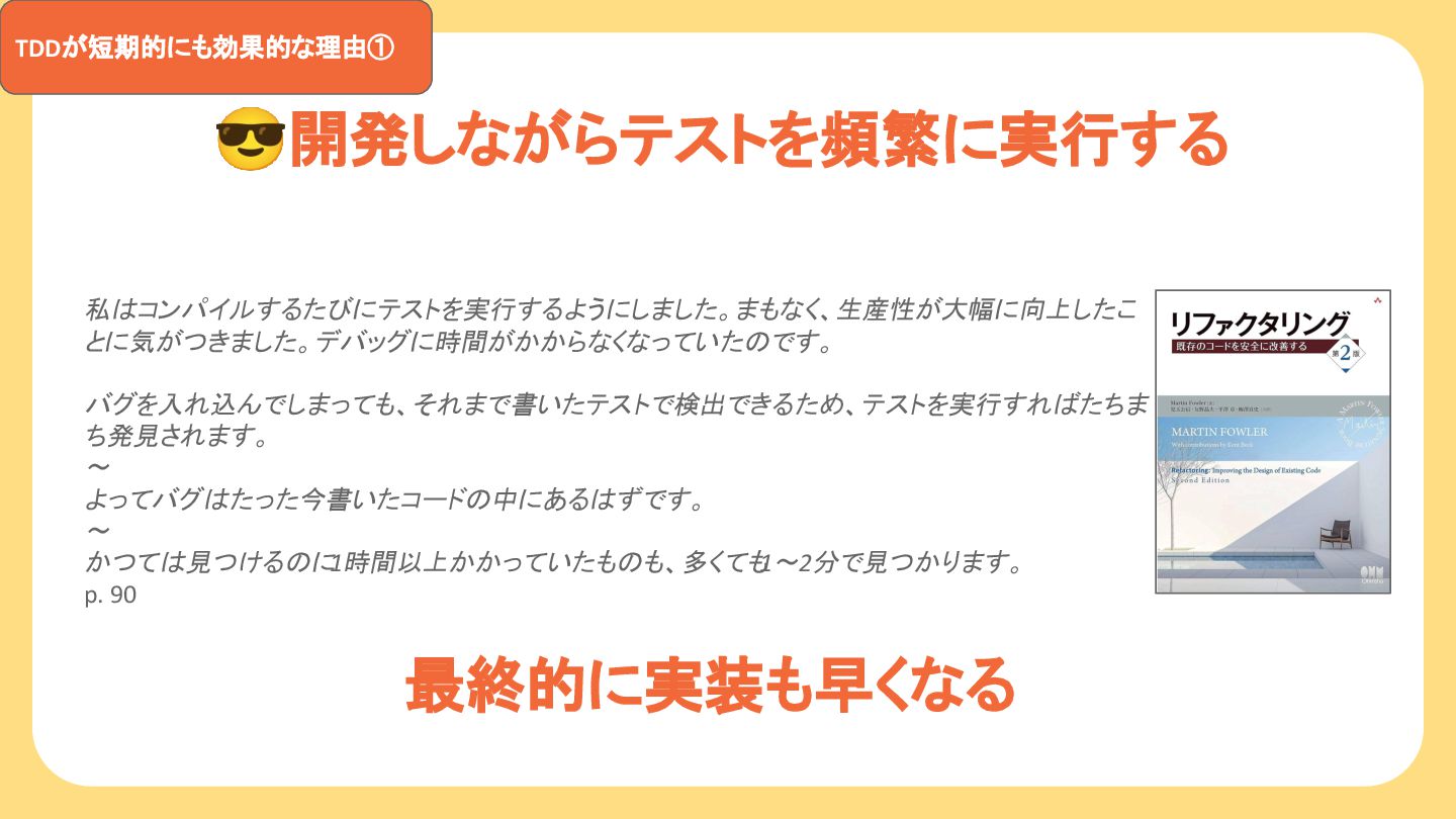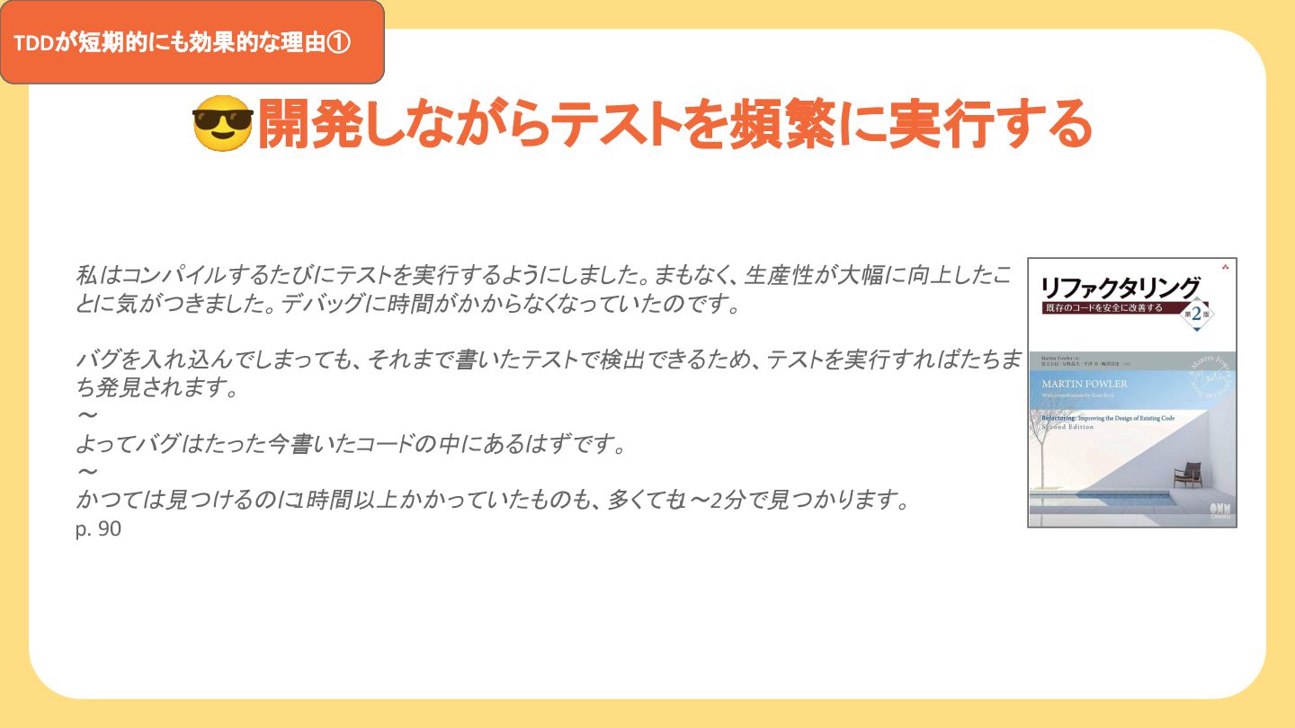 90 最終的に実装も早くなる TDDが短期的にも効果的な理由① 😎開発しながらテストを頻繁に実行する