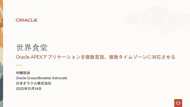 それぞれの言語に翻訳した品目名を保存する表WR_MENUS_TLを作成します。 create table WR_MENUS_TL ( ID number primary key, MENU_ID number not null, LOCAL_MENU_NAME varchar2(80) not null, LANGUAGE varchar2(3) not null ); insert into wr_menus_tl(id, menu_id, local_menu_name, language) values(1,1,'牛丼','JA'); insert into wr_menus_tl(id, menu_id, local_menu_name, language) values(2,1,'beef bowl','US'); insert into wr_menus_tl(id, menu_id, local_menu_name, language) values(3,1,'牛肉碗','ZHS'); insert into wr_menus_tl(id, menu_id, local_menu_name, language) values(4,1,'소고기덮밥','KO'); insert into wr_menus_tl(id, menu_id, local_menu_name, language) values(5,2,'ジャージャー麺','JA'); insert into wr_menus_tl(id, menu_id, local_menu_name, language) values(6,2,'Fried Source Noodles','US'); insert into wr_menus_tl(id, menu_id, local_menu_name, language) values(7,2,'炸醬麵','ZHS'); insert into wr_menus_tl(id, menu_id, local_menu_name, language) values(8,2,'짜장면','KO'); insert into wr_menus_tl(id, menu_id, local_menu_name, language) values(9,3,'ハンバーガー','JA'); insert into wr_menus_tl(id, menu_id, local_menu_name, language) values(10,3,'hamburger','US'); insert into wr_menus_tl(id, menu_id, local_menu_name, language) values(11,3,'汉堡包','ZHS'); insert into wr_menus_tl(id, menu_id, local_menu_name, language) values(12,3,'햄버거','KO'); commit;