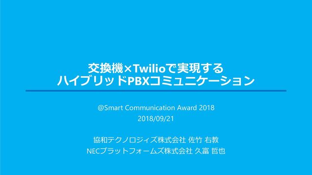 交換機×Twilioで実現する ハイブリッドPBXコミュニケーション @Smart Communication Award 2018 2018/09/21 協和テクノロジィズ株式会社 佐竹 右教