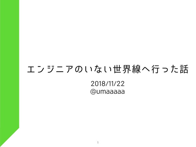 エンジニアのいない世界線へ⾏った話 2018/11/22 @umaaaaa 1
