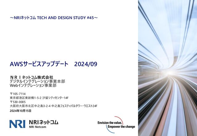 Stability AI の上位 3 つの Text-to-Image モデルが Amazon Bedrock で利用可能に https://aws.amazon.com/jp/about-aws/whats-new/2024/09/stability-ais-text-to-image-models- amazon-bedrock/ ◼ AWS Gateway Load Balancer が設定可能な TCP アイドルタイムアウトのサポートを開始 https://aws.amazon.com/jp/about-aws/whats-new/2024/09/aws-gateway-load-balancer-tcp-idle- timeout/ ◼ Amazon ECS が AWS Fargate による AWS Graviton ベースのスポットコンピューティングのサポートを開始 https://aws.amazon.com/jp/about-aws/whats-new/2024/09/amazon-ecs-graviton-based-spot- compute-fargate/ ◼ Amazon Q Developer がより自律的なコーディングをサポート https://aws.amazon.com/jp/developer/generative-ai/amazon-q/change-log/ ◼ Amazon QuickSight で Google BigQuery コネクタのダイレクトクエリのサポートを開始 https://aws.amazon.com/jp/about-aws/whats-new/2024/09/amazon-quicksight-direct-query- functionality-google-bigquery-connector/ AWSサービスアップデート #nncstudy 転載、複製、改変等、および許諾のない二次利用を禁止します