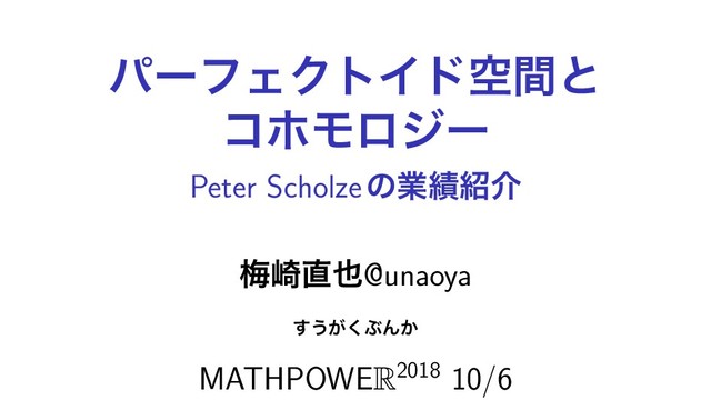 ύʔϑΣΫτΠυۭؒͱ ίϗϞϩδʔ Peter Scholzeͷۀհ ക࡚@unaoya ͢͏͕͘ͿΜ͔ MATHPOWER2018 10/6