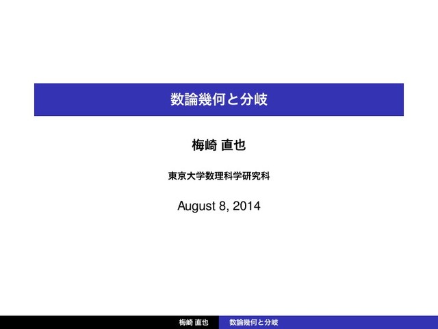 زԿͱذ ക࡚ ౦ژେֶཧՊֶݚڀՊ August 8, 2014 ക࡚ زԿͱذ