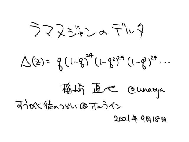 すうがく徒のつどい@オンライン「ラマヌジャンのデルタ」