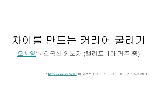 지난 10년간: 미국의 세 도시에 있는 다른 회사들(Facebook, DRW Trading, Google)에서 인턴을 경험했고, 카네기 멜론에서 컴퓨터 학사와 수학 석사 과정을 마쳤습니다. 졸업 후 한국의 넥슨과 카카오를 거쳐서 현재까지 캘리포니아에 있는 구글에서 대규모 분산 처리 시스템 개발을 하고 있습니다. 각각의 회사에서 SNS, 금융, 검색, 게임, 메시징, 클라우드 업계에 발가락 정도를 담가볼 수 있었습니다. 제대로 이룬 건 없지만 다양한 환경에서 배운 교훈들이 유용하지 않을까 기대합니다.