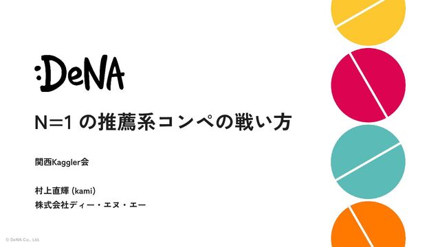 © DeNA Co., Ltd. 1 N=1 の推薦系コンペの戦い方 関西Kaggler会 村上直輝 (kami)