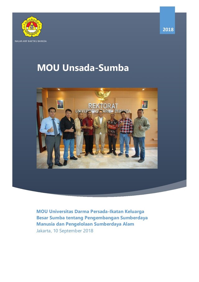 10 September 2018 MOU Universitas Darma Persada-Ikatan Keluarga Besar Sumba tentang Pengembangan Sumberdaya Manusia dan Pengelolaan Sumberdaya Alam