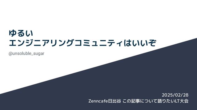 2025/02/28 Zenncafe日比谷 この記事について語りたいLT大会 ゆるい エンジニアリングコミュニティはいいぞ @unsoluble_sugar