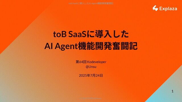 2025 年7 月24 日 toB SaaS に導入したAI Agent 機能開発奮闘記 © 2025 EXPLAZA Inc. 1