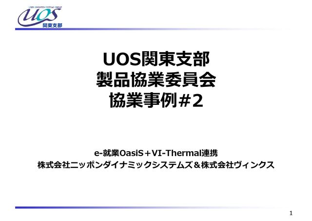関東支部 1 UOS関東支部 製品協業委員会 協業事例#2 e-就業OasiS+VI-Thermal連携 株式会社ニッポンダイナミックシステムズ&株式会社ヴィンクス