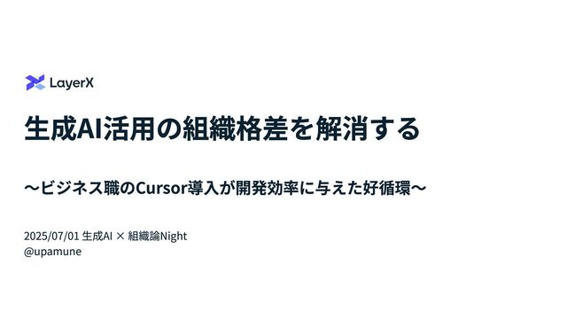 生成AI活用の組織格差を解消する 〜ビジネス職のCursor導入が開発効率に与えた好循環〜 2025/07/01 生成AI × 組織論Night @upamune