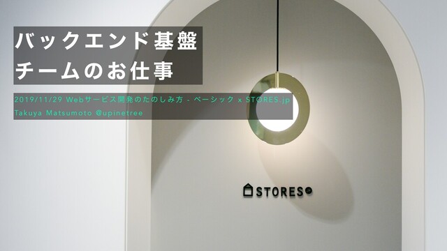 ͷ ͓ ࢓ ࣄ 2 0 1 9 / 1 1 / 2 9 We b α ʔ Ϗ ε ։ ൃ ͷ ͨ ͷ ͠ Έ ํ - ϕʔ γ ο Ϋ x S T O R E S . j p Ta k u y a M a t s u m o t o @ u p i n e t re e