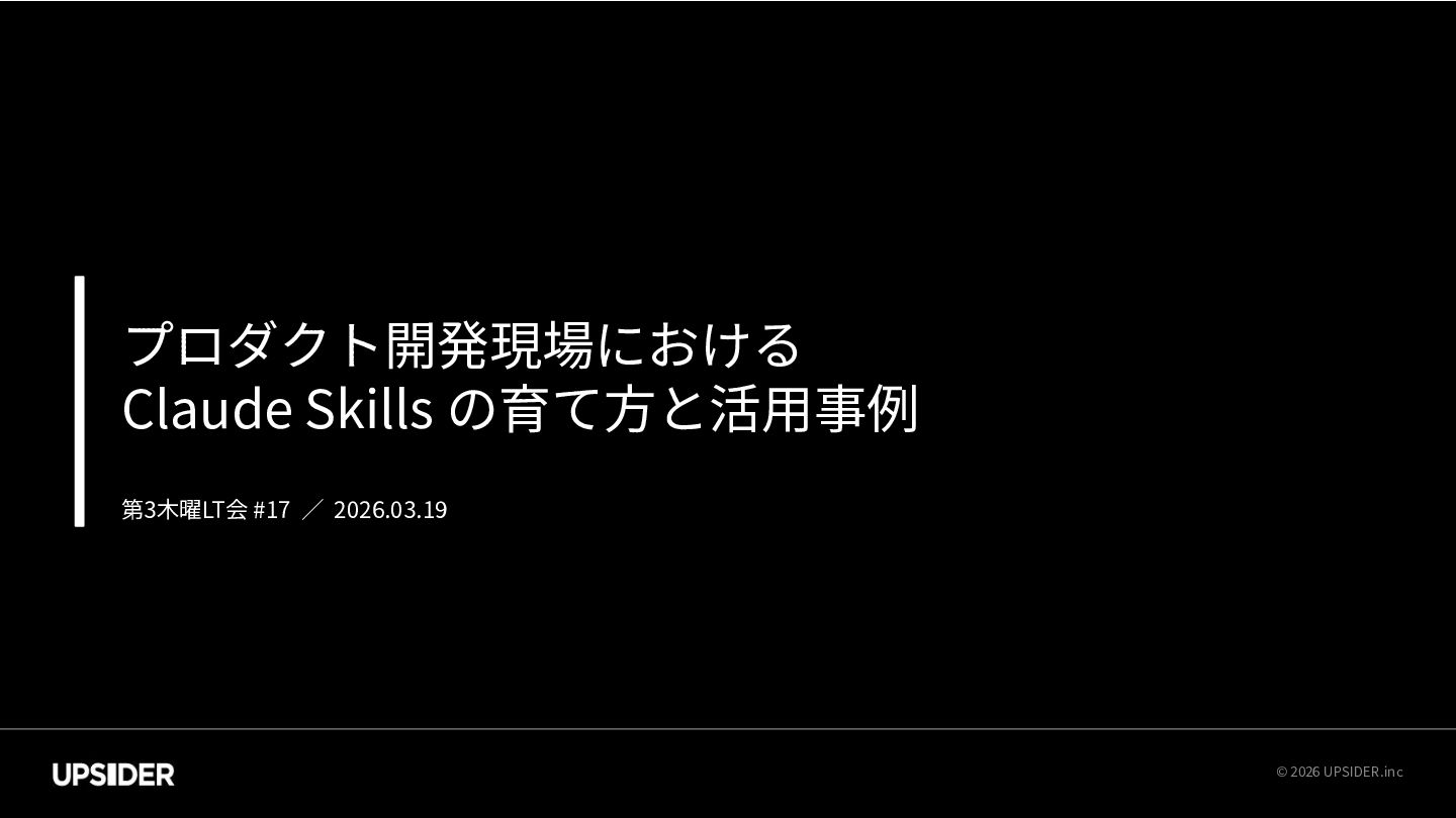 プロダクト開発現場における Claude Skills の育て⽅と活⽤事例 第3⽊曜LT会 #17 ∕ 2026.03.19 © 2026