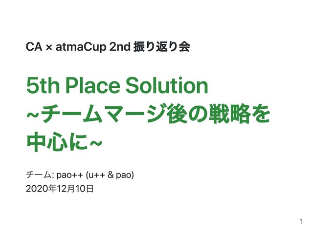 まとめ CA × atmaCup 2nd の 5位解法の紹介 paoさんとのチームマージ後の戦略を中⼼に 14