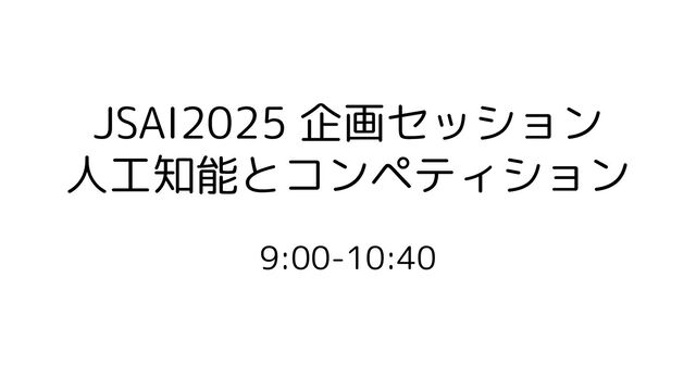 9:00-10:40 JSAI2025 企画セッション 人工知能とコンペティション