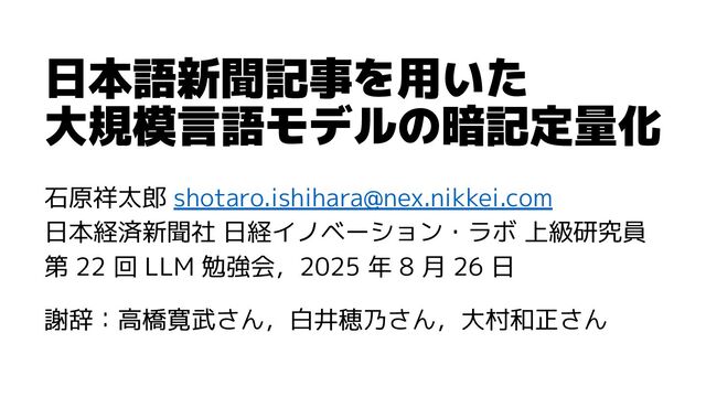 日本語新聞記事を用いた大規模言語モデルの暗記定量化 / LLMC2025