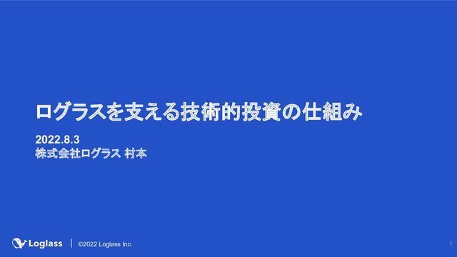 1 ©2022 Loglass Inc. ログラスを支える技術的投資の仕組み 2022.8.3 株式会社ログラス 村本