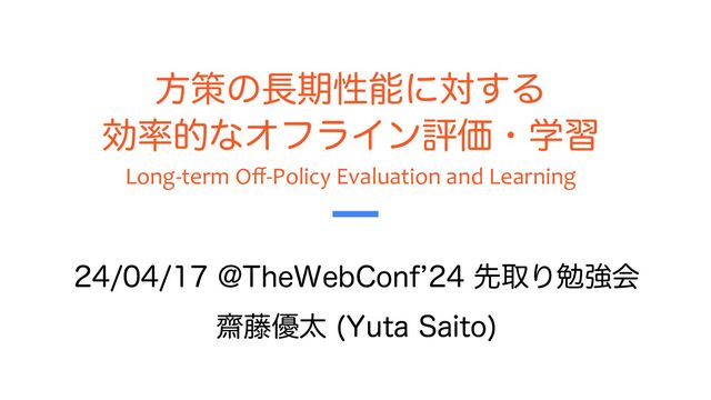 発表概要: アルゴリズムや方策の短期結果と長期結果は往々にして異なり、長期性能を推定したり、それに基づいて意思決定を下すことがより理想的である。例えば、クリックベイトアルゴリズムでは短期的なクリック数が増加する可能性はあるが、長期的なユーザー満足は低下するため、短期結果に惑わされずに評価を行えることが重要だろう。アルゴリズムの長期結果を推定するためにオンライン実験を実施できるかもしれないが、この方法では長期性能の評価に数ヶ月またはそれ以上の時間がかかり、より良いアルゴリズムを選択する手順として役立たずである。