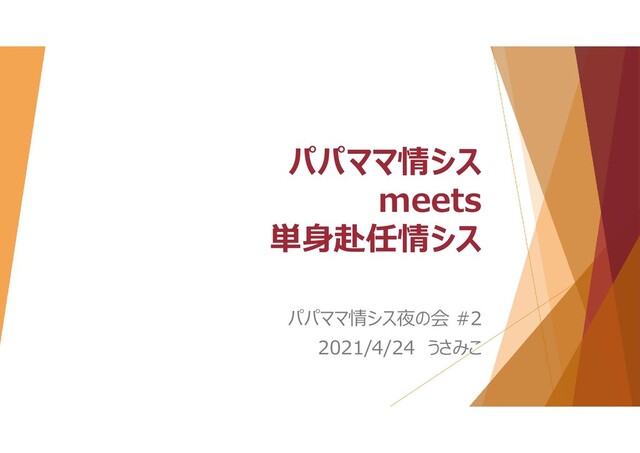 パパママ情シス meets 単身赴任情シス パパママ情シス夜の会 #2 2021/4/24 うさみこ