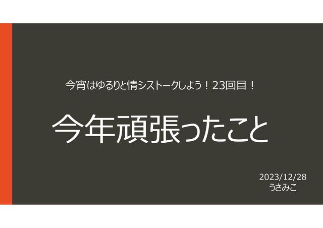 情シスの中期計画にインフラ・セキュリティを設けるよう、強く提案。 (M365、ゼロトラスト・シングルサインオン・クラウドサーバ、二回目) 部⾧が分からない・自分で説明ができない、上に響くシステム系優先で没に。 この件で退職者の送別会で口論になる。 • ビジネス会計検定3級合格 2月~4月 • インフラの老朽更新計画を策定。策定した直後に故障続出。 5月 • ネットワーク障害対策の提案で、役員から「当社のネットワークにミッション クリティカルなものは無いと断言される。 • 運動した汗を拭いたらアンモニアの疲労臭がした。 6月 • 土日仕事を止める。 • 仕事と酒を控えて運動をしまくって疲労臭をなくし、5Kg近く痩せる。 7月 • AWS CLF合格。 8月 • 転職活動で内定を得る。 • 部⾧に辞意を示したら一週間以上寝かせてしまう。 9月 • 常務や同僚から遺留の相談を受けるが断る。引継のWBSとスケジュールを作成。 10月 • 人つなぎ、同じ地域のIT勢で集まる機会を設ける。 11月 • 業務引継、送別会ラッシュ、実家に引越。 • AWS SAA合格。 12月