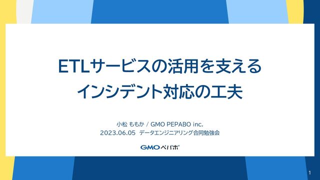 1 ETLサービスの活用を支える インシデント対応の工夫 小松 ももか / GMO PEPABO inc. 2023.06.05 データエンジニアリング合同勉強会