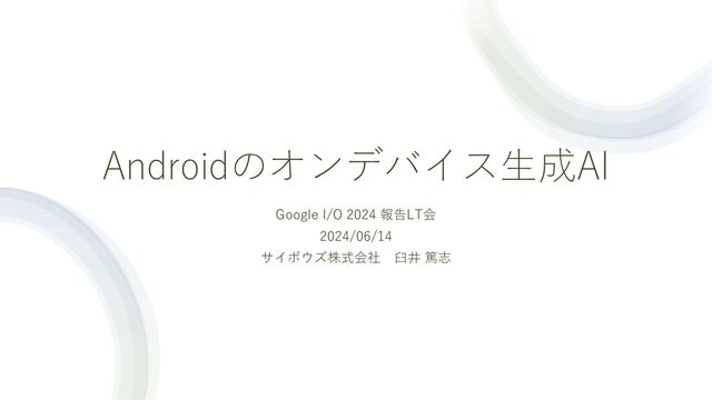 サイボウズ社内で実施したGoogle I/O 2024 報告LT会の発表スライドです。 「Android on-device AI under the hood」の内容をまとめました。 https://www.youtube.com/watch?v=nOinQrCvZkM