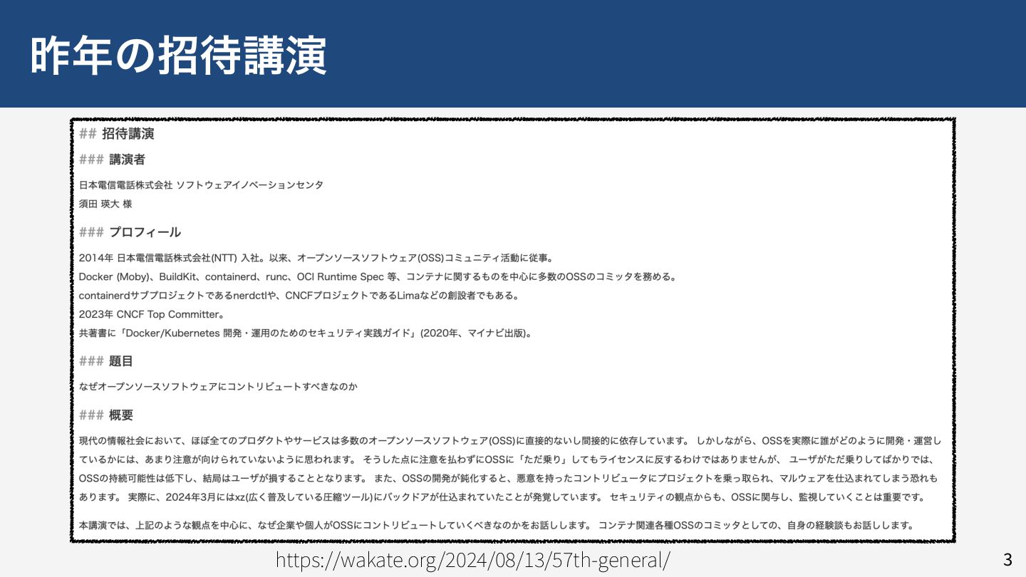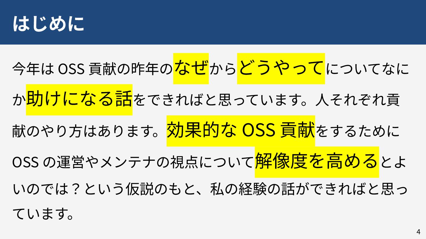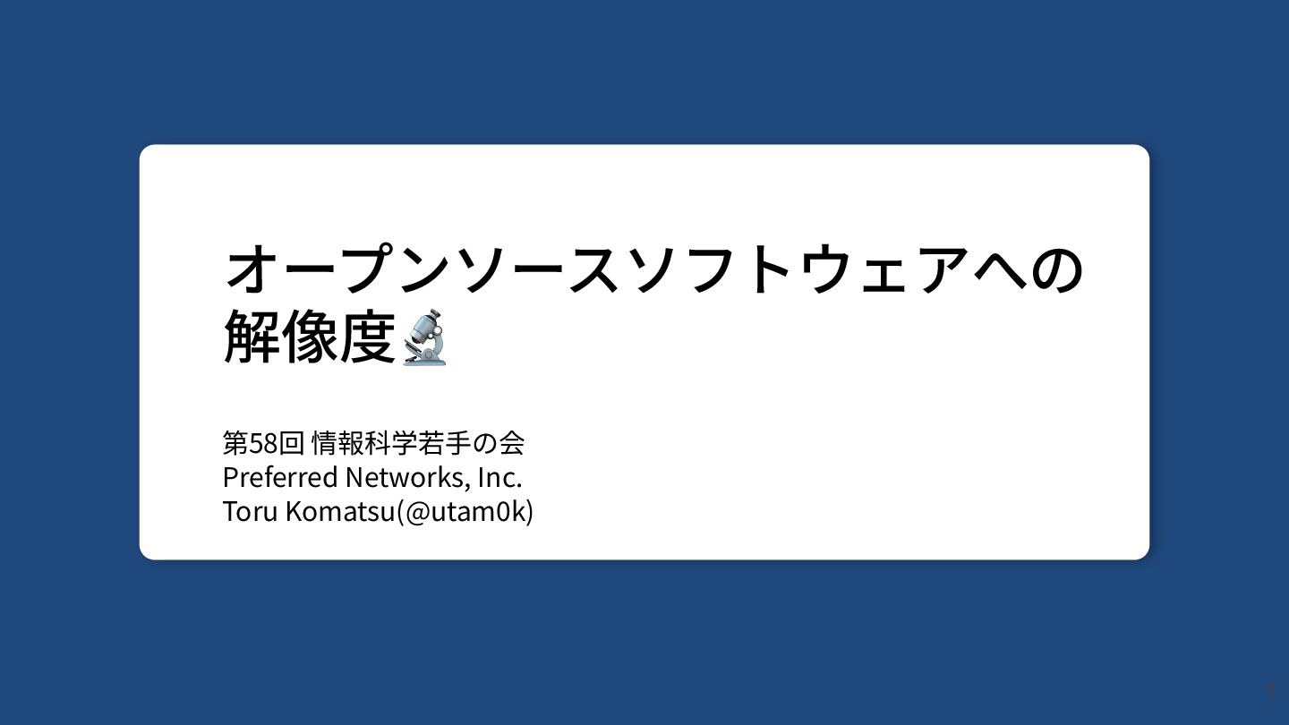 情報科学若手の会では昨年に須田氏による「なぜオープンソースソフトウェアにコントリビュートすべきなのか」という招待講演が行われました。こちらの講演ではオープンソースソフトウェア(OSS)へ貢献する意義が明確になったかと思います。今年の本公演では、メンテナ視点でOSSへの貢献や運営が実際にはどのように行われているか、その実情をお伝えします。