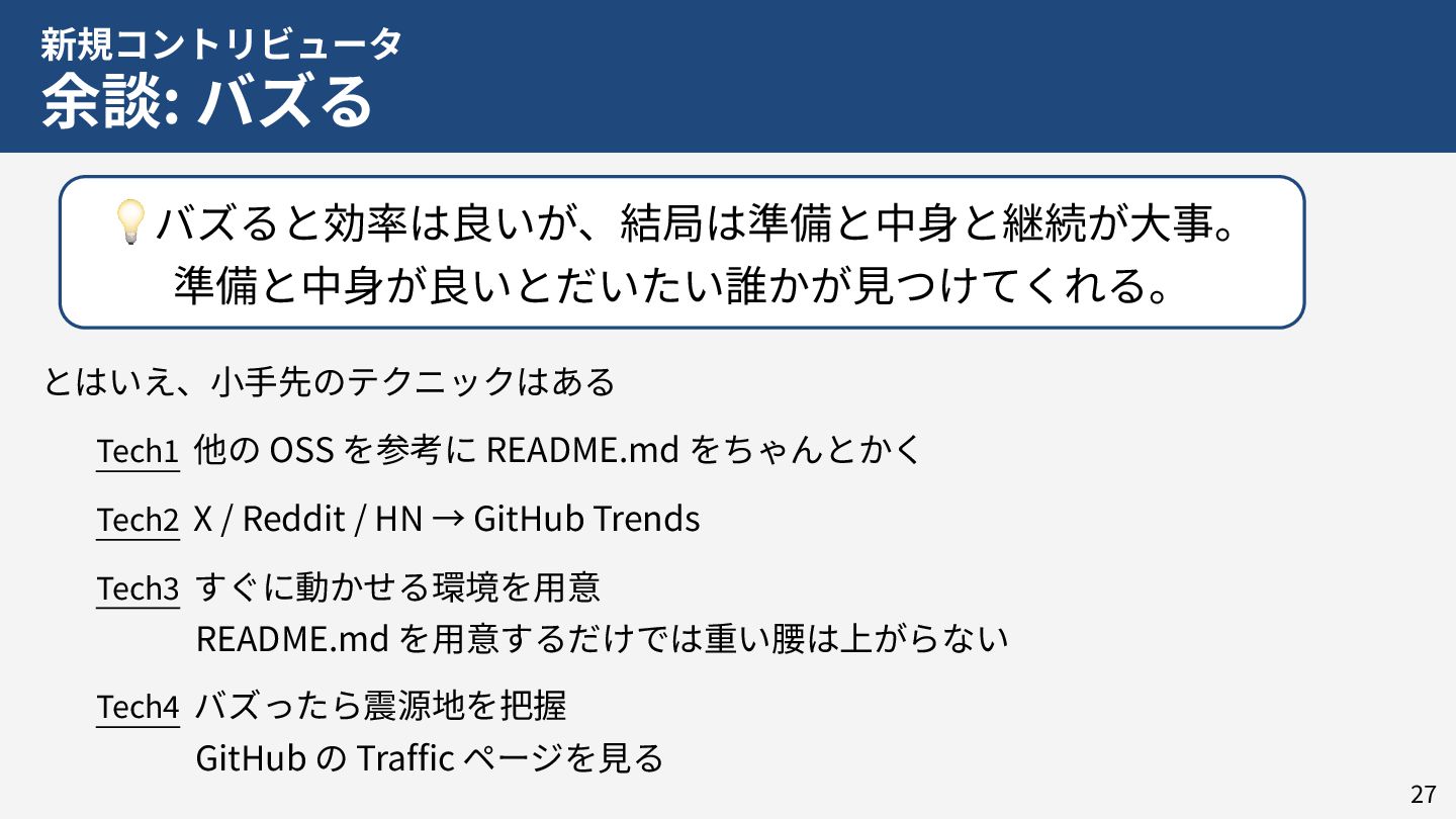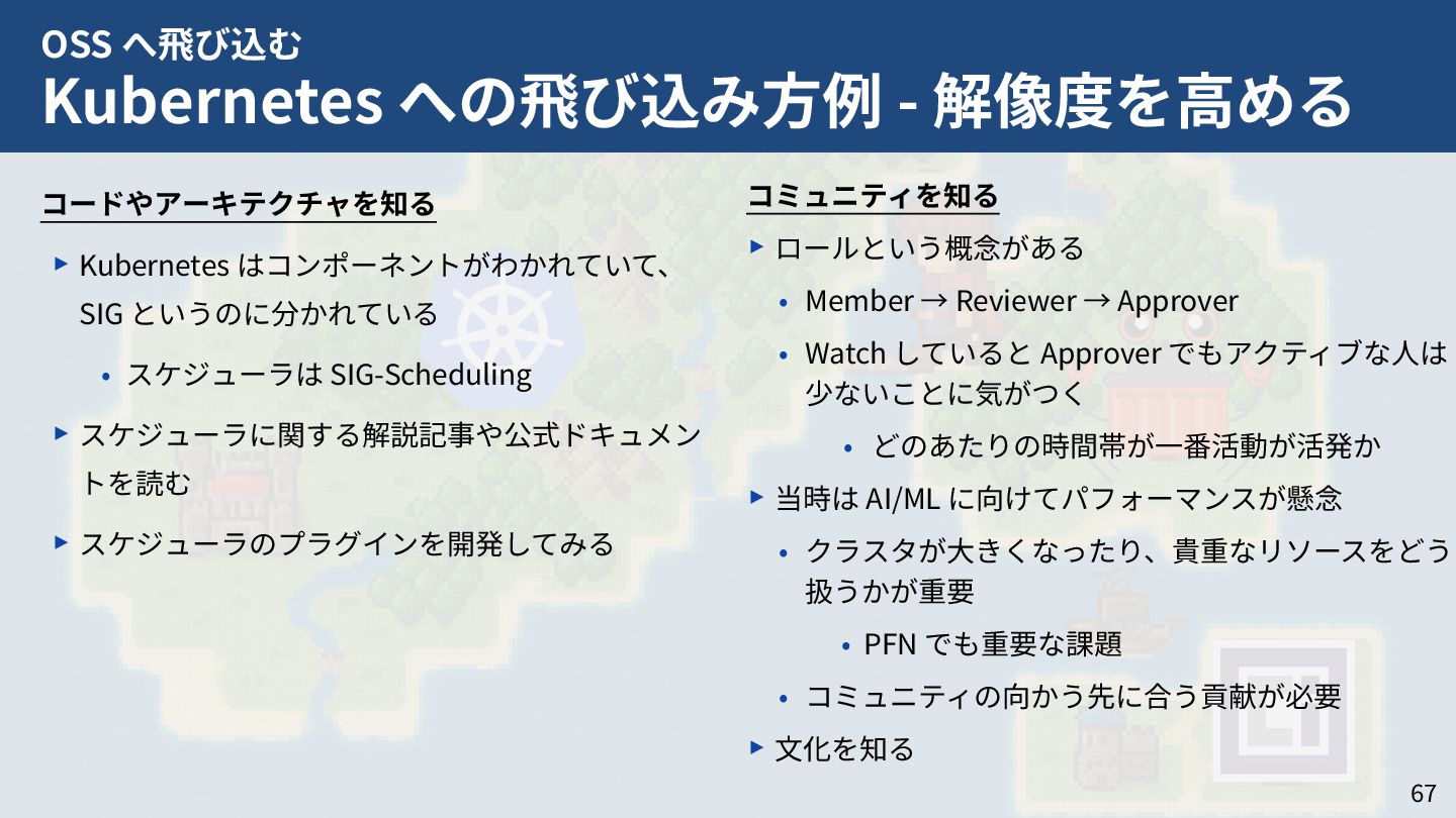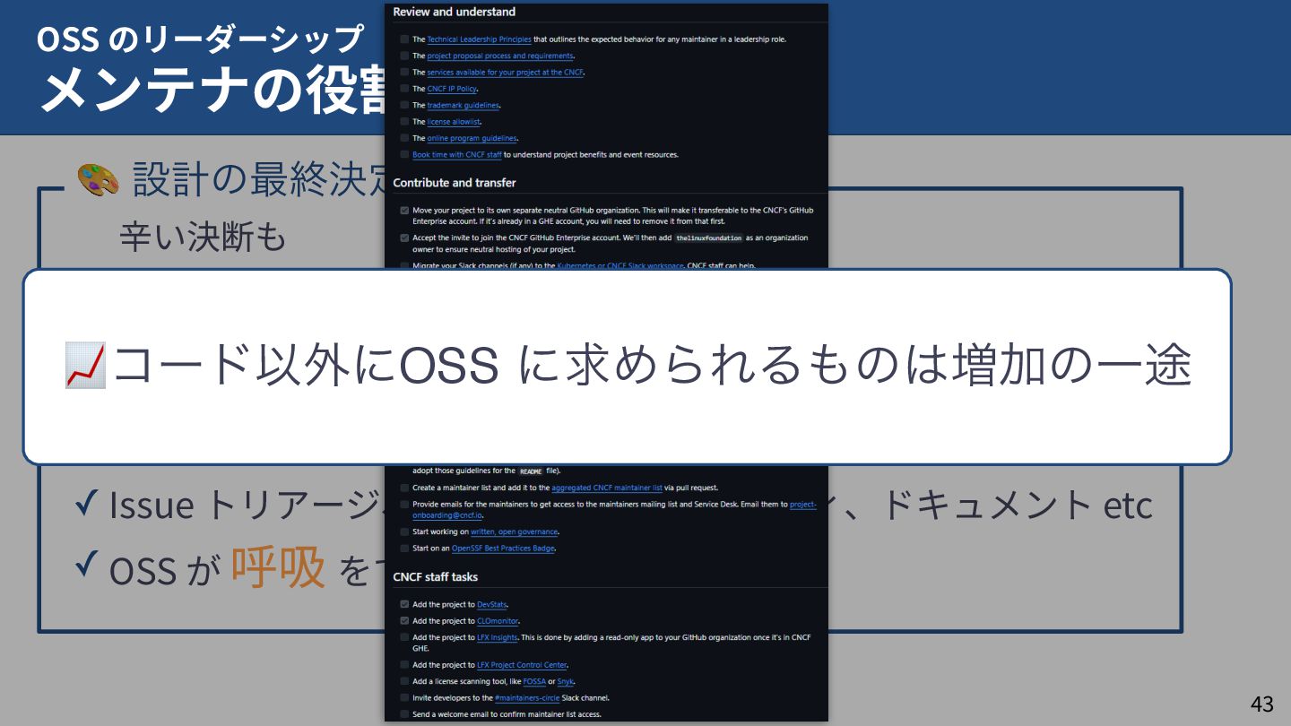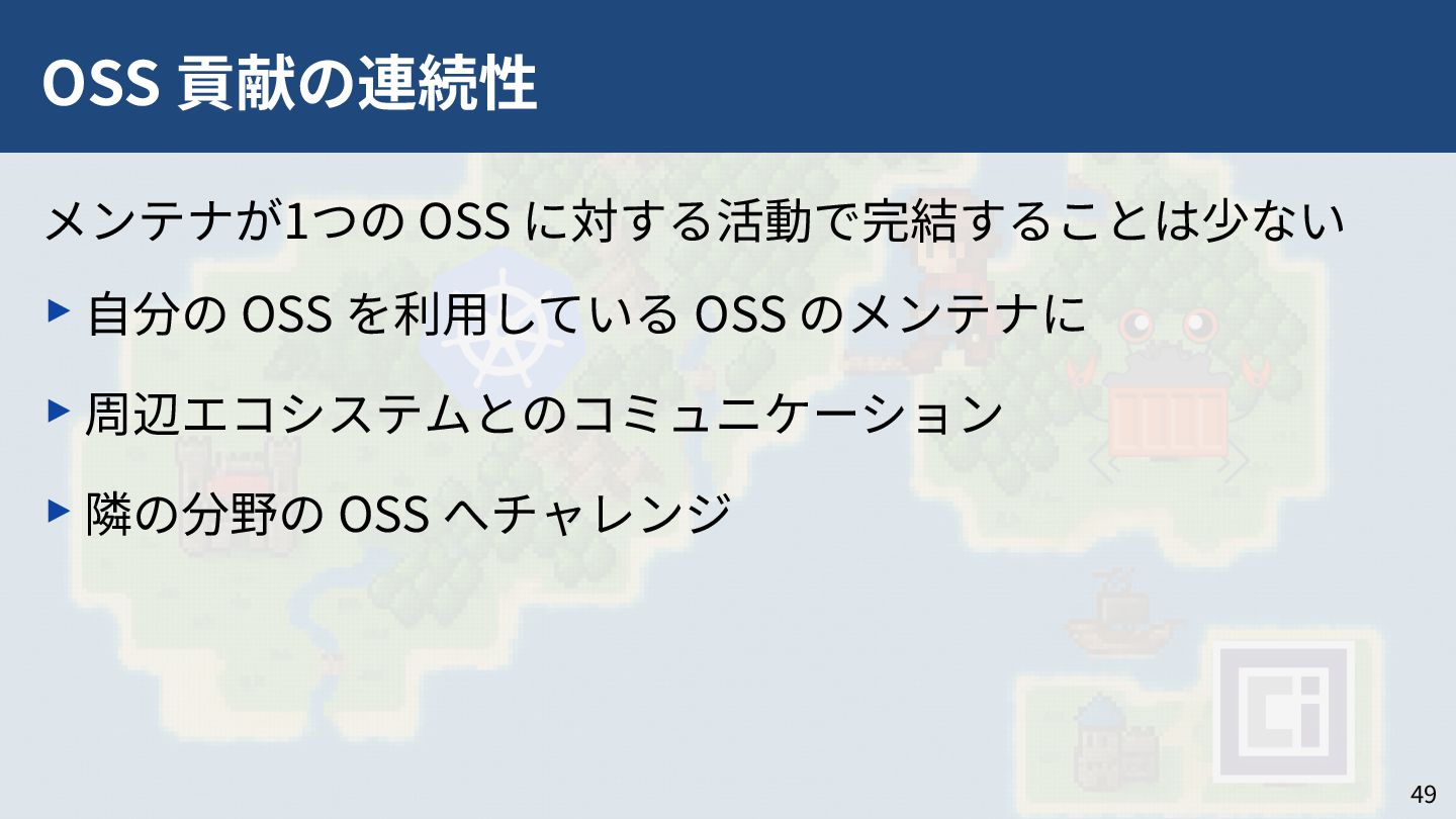 私はこれまで 4 年以上にわたってコンテナランタイム youki の開発をリードしてきました。この 4 年以上のメンテナ経験に基づき、OSS運営の裏側にある課題や意思決定の実際を、具体的な事例と共に解説します。また、一例ではありますが、持続的なOSS運営、つまり常に開発が続き成長をするOSSのために意識してきた観点についても紹介します。本公演を通じて、OSSへの解像度が高まり、効果的な貢献へのイメージを掴んでいただければ幸いです。