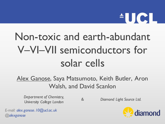 cells Alex Ganose, Saya Matsumoto, Keith Butler, Aron Walsh, and David Scanlon Department of Chemistry, University College London Diamond Light Source Ltd. &