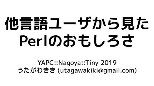 他言語ユーザから見た Perlのおもしろさ YAPC::Nagoya::Tiny 2019 うたがわきき (