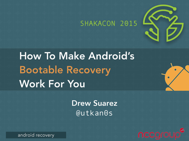 Consultant for Matasano/NCC Group • Focus in mobile security/research • Built Android firmware for dozens of devices • CyanogenMod Project / Wiki • “Cool guy” Internet handle: utkanos