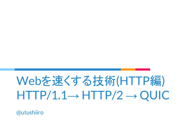 Webを速くする技術(HTTP編) HTTP/1.1→ HTTP/2 → QUIC @utushiiro