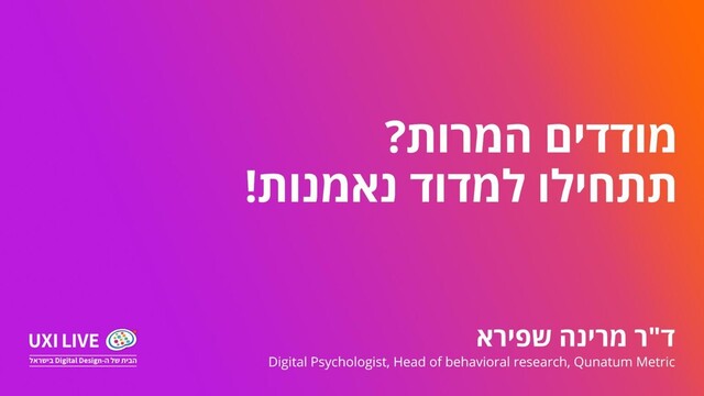 נפצח שאלות אלו באמצעות מודלים פסיכולוגיים מוכחים, נאבחן האם מערכת היחסים עם הלקוחות שלכם היא בשלב הסטוץ או קצת מעבר ונלמד כלי פרקטי למדידת הנאמנות למוצרים, כדי לזהות את העיצוב שיוצר נאמנות גבוהה למוצר.