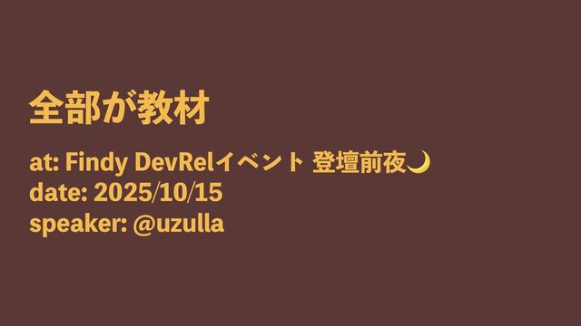 at: Findy DevRelイベント 登壇前夜🌙 ( https://findy.connpass.com/event/370952/ ) date: 2025/10/15 speaker: @uzulla