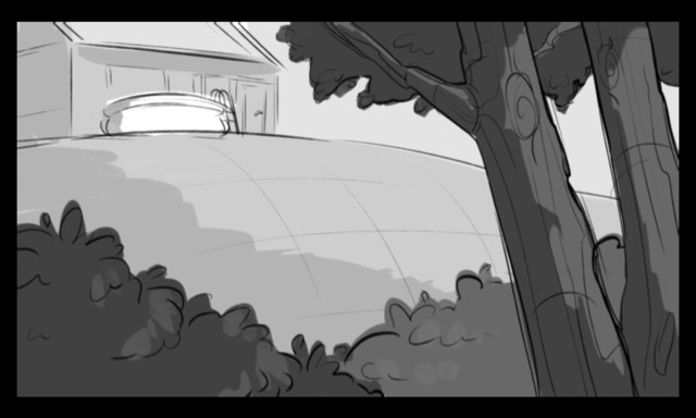 A storyboard for a short animated film. A little girl befriends a pollywog creature that lives in her pool and learns that if you love something, you must set it free.