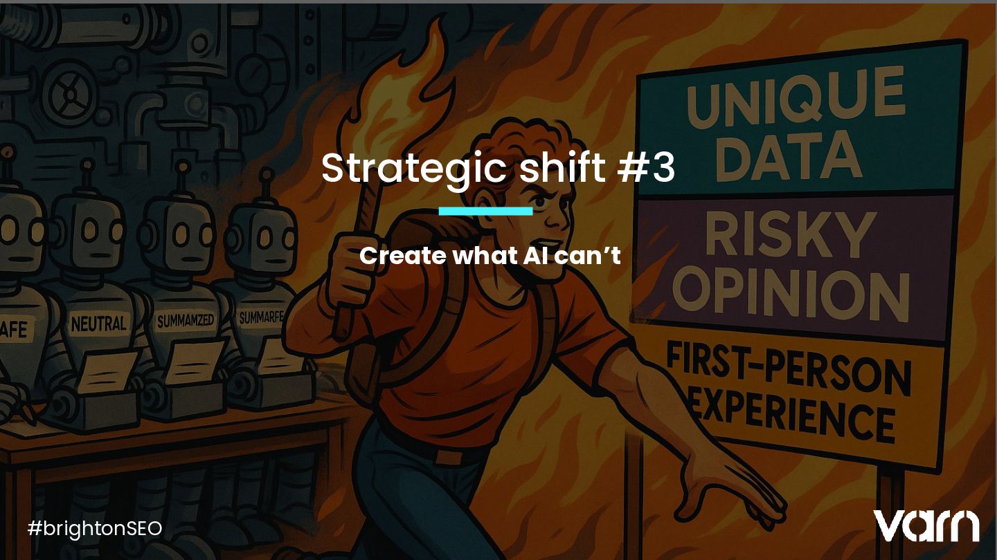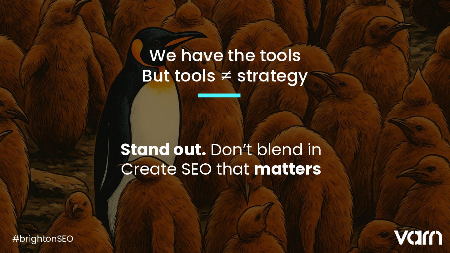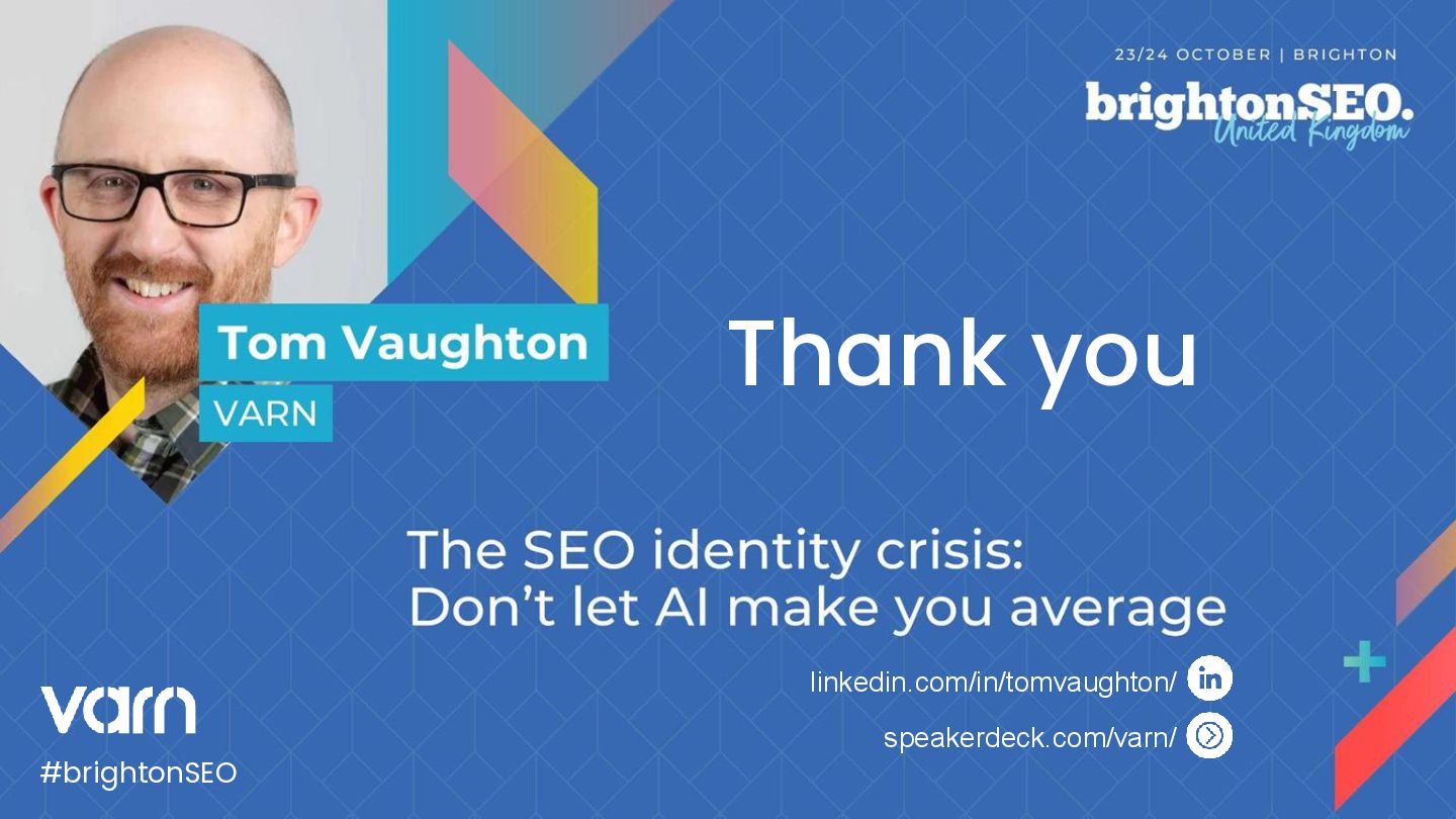 Tom Vaughton explored how the rapid rise of AI, from Google’s AI Mode and AI Overviews to ChatGPT and Perplexity, is forcing the SEO industry into an exciting new era. Drawing comparisons to the early 2000s, when SEO was fast-paced and unpredictable, Tom argued that many marketers have become too reliant on formulaic approaches and AI tools, which leads to safe, average outcomes.