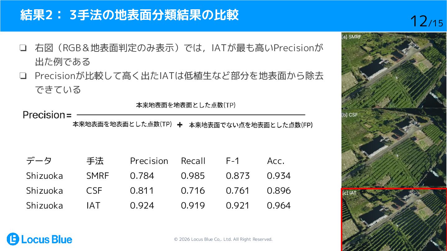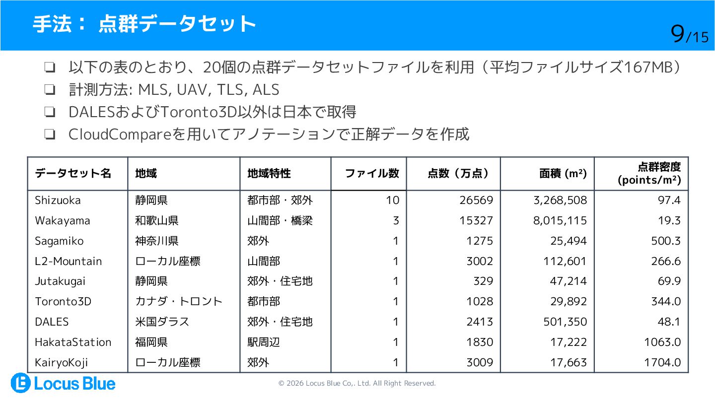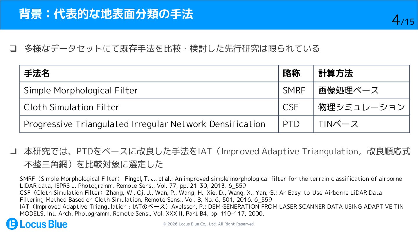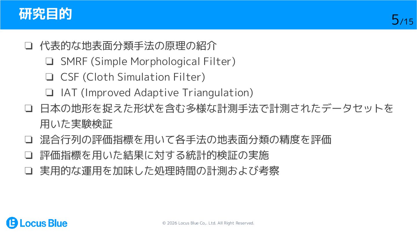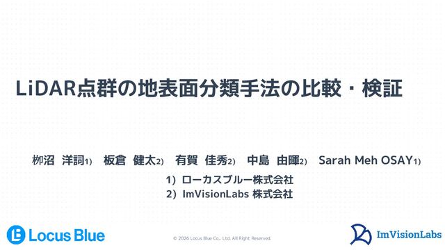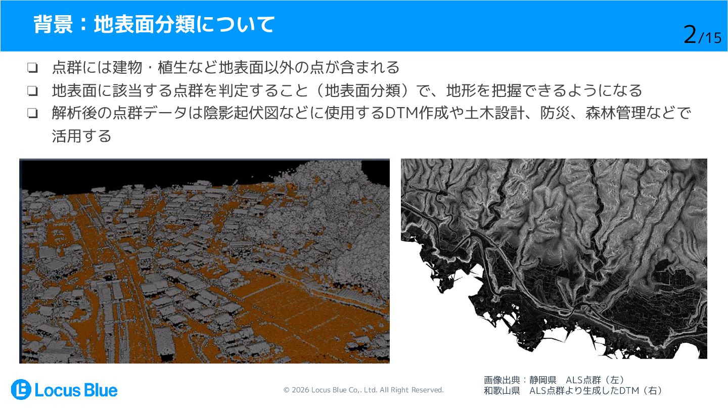 1. © 2026 Locus Blue Co,. Ltd. All Right Reserved. LiDAR点群の地表面分類手法の比較・検証