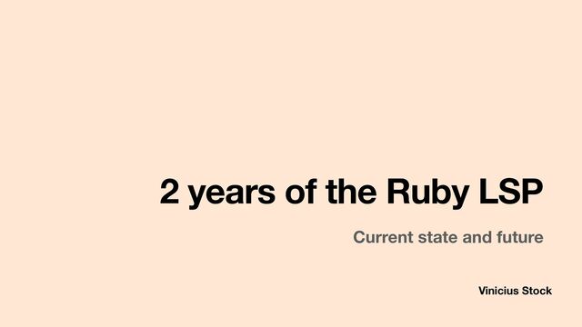 This talk goes over the 2 years of development of the Ruby LSP. It starts showcasing some of its features, the current state of the internals and then goes into some of the future plans for the project.