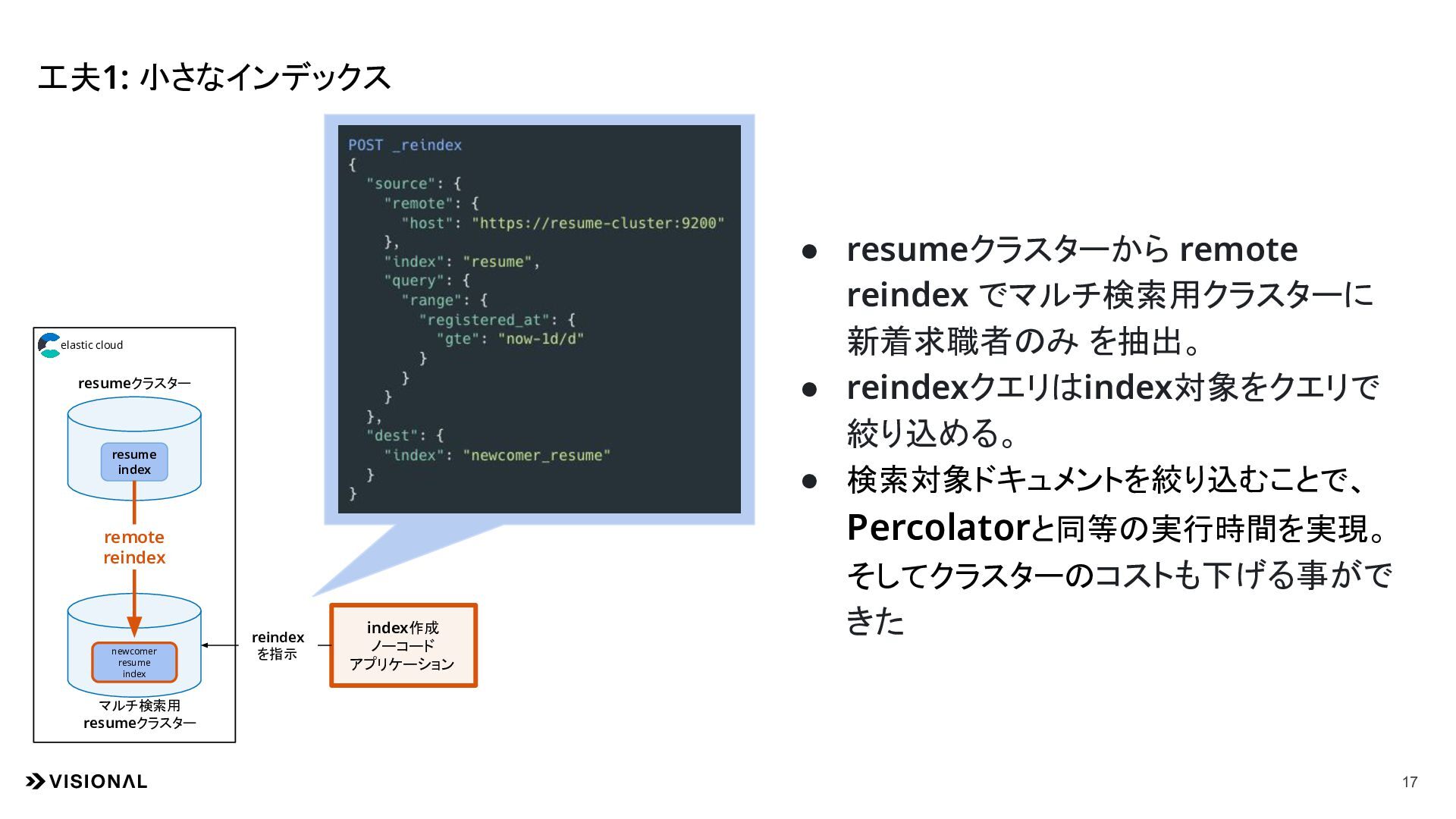 8. 工夫1: 小さなインデックス 17 resume index index作成 ノーコード アプリケーション reindex を指示