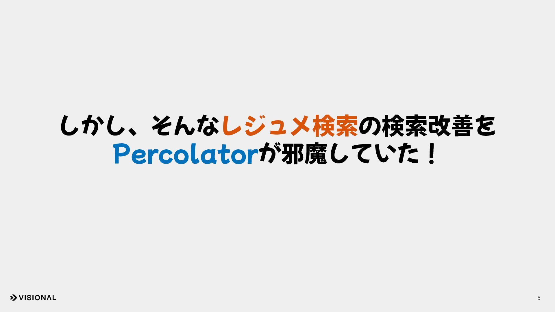 3. ビズリーチでは新着求職者通知バッチで使っていた 7 新着求職者 通知バッチアプリ ケーション 新着求職者 のレジュメ 少量ドキュメント× 大量クエリの構造なので、 通常検索と比較してpercolatorは合理的な選択に見えた