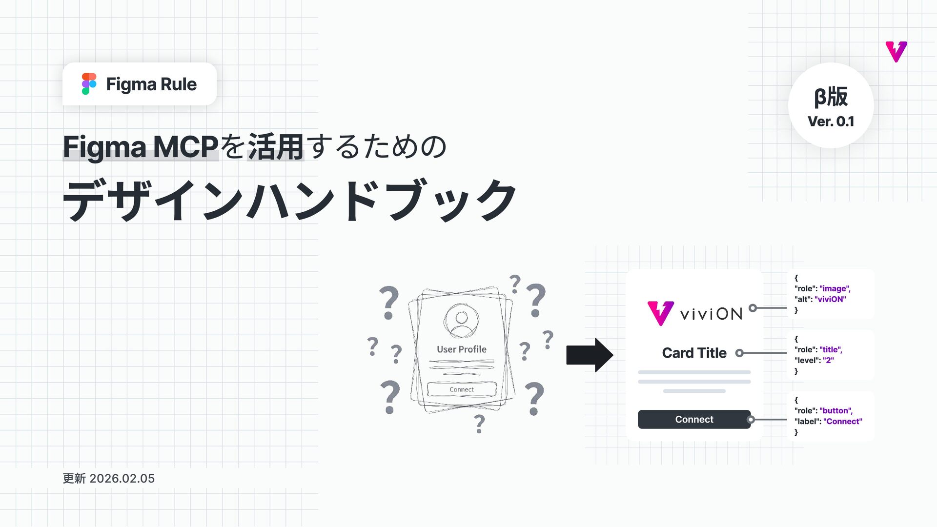 そこでviviONでは、Figma MCPを活用した実装生成において、AIが迷わず正確にコードを書けるようにデザイナーとフロントエンドエンジニアで協力して研究し、得た成果をまとめた「Figma MCPを活用するためのデザインハンドブック」を作りました。