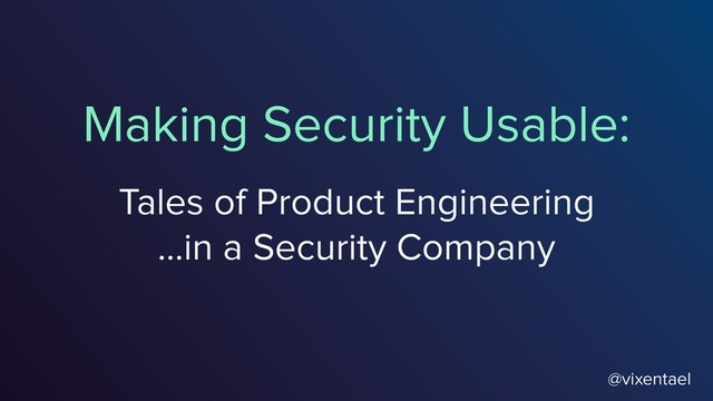 We'll take a look at the process through the eyes of one of our customers, who made all the things wrong before doing things right, and through the eyes of product engineer, responsible for learning the lessons to make security products even more usable and reliable for non-security-focused engineers.