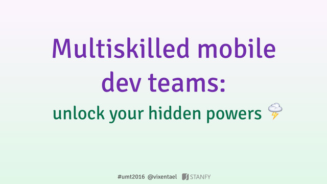 I'll talk about another way of organization: multiskilled dev team, experience and benefits.